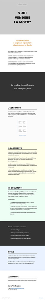 Итальянская версия сайта ItaliaMotoExport создана для итальянских продавцов. На сайте подробно расписывается порядок оформления документов.