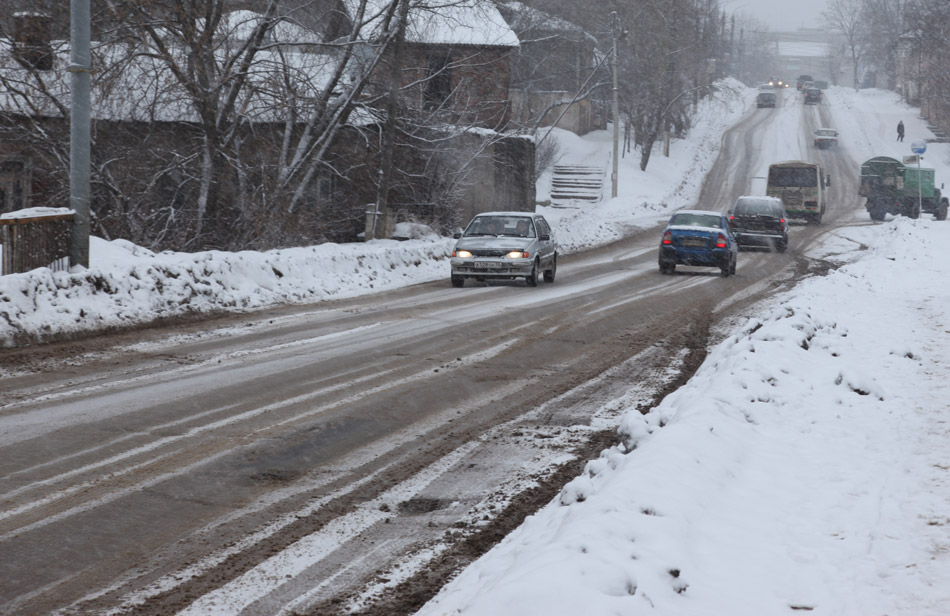 Тротуары и пешеходные дорожки покрылись белой труднопроходимой массой.