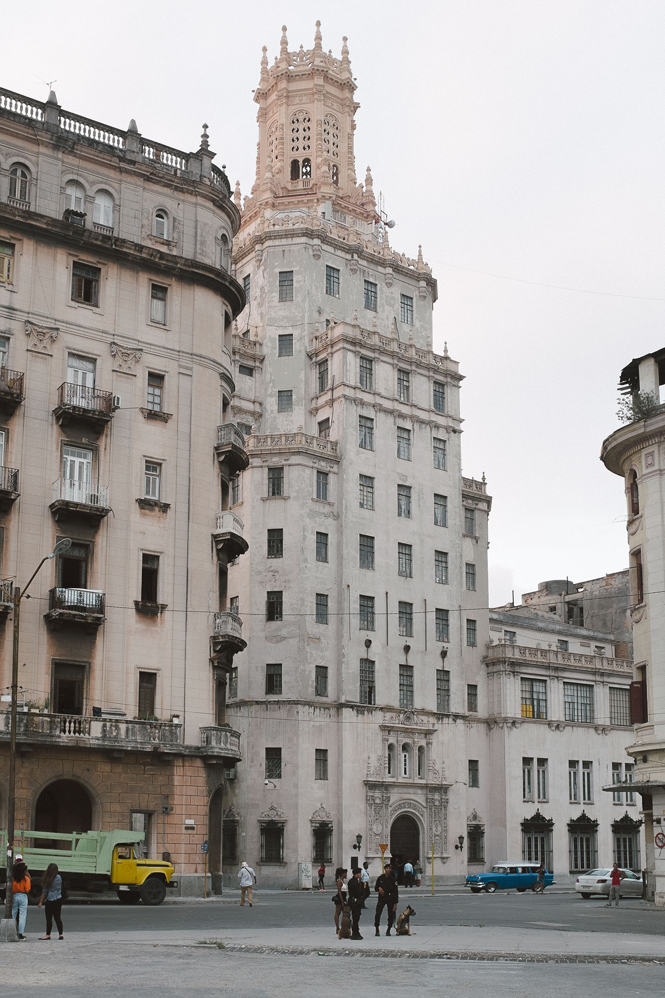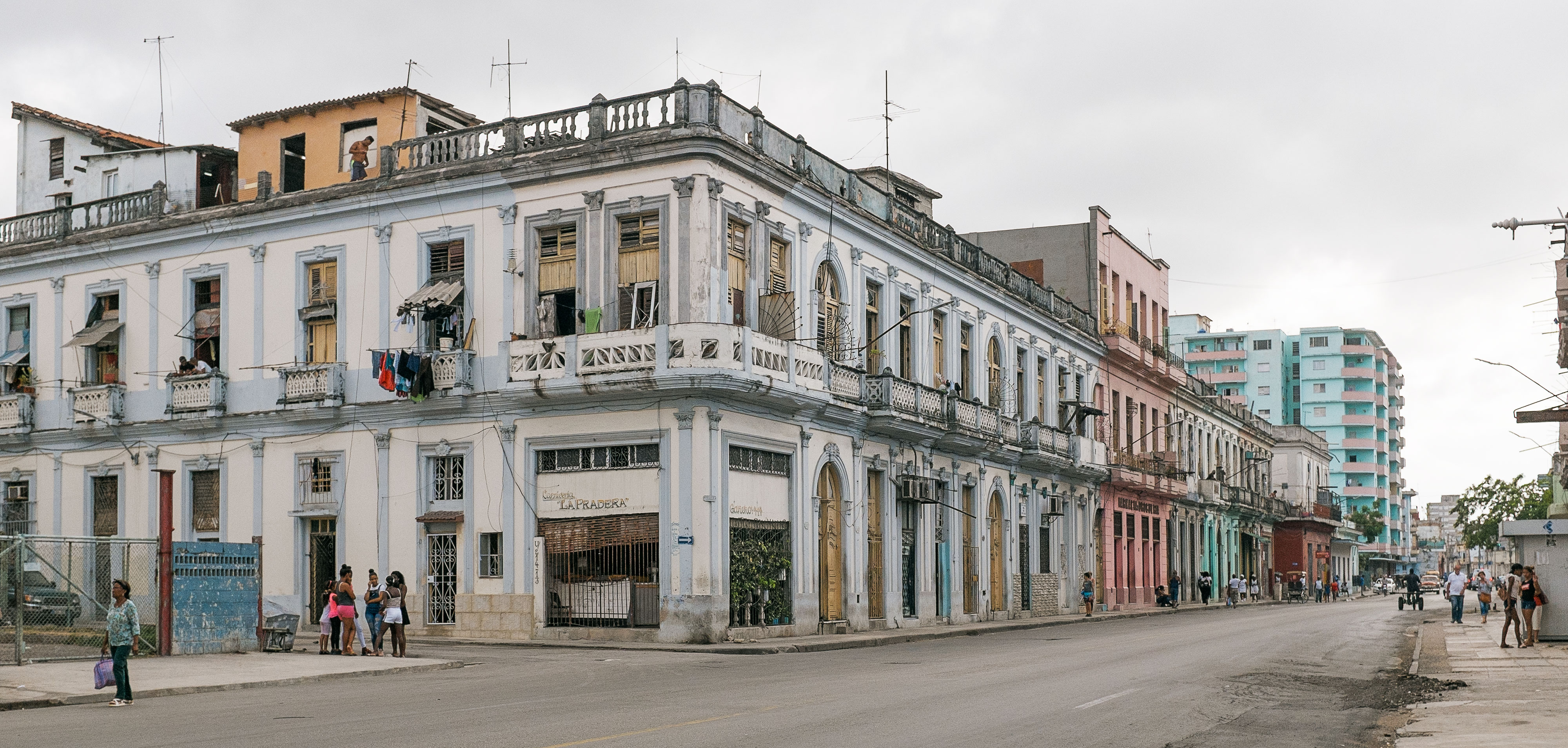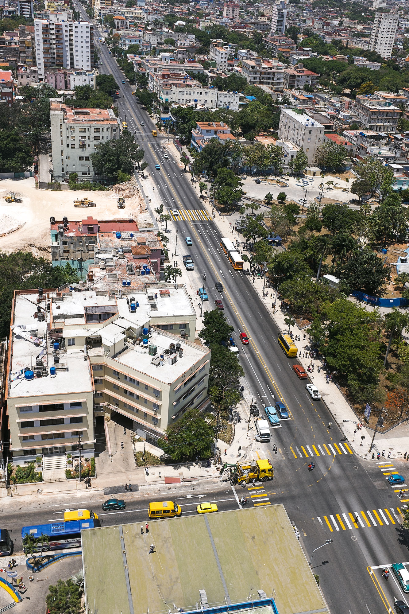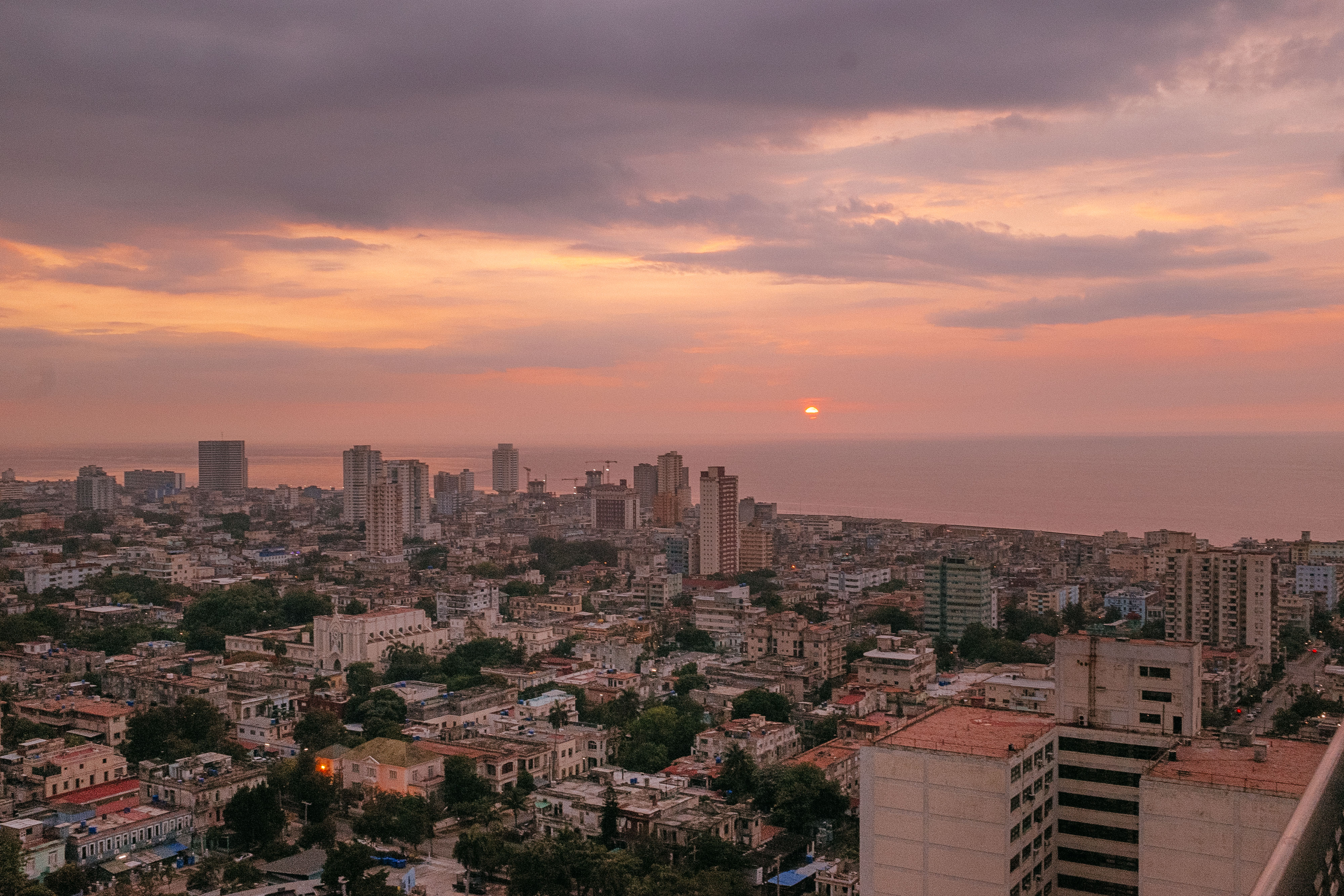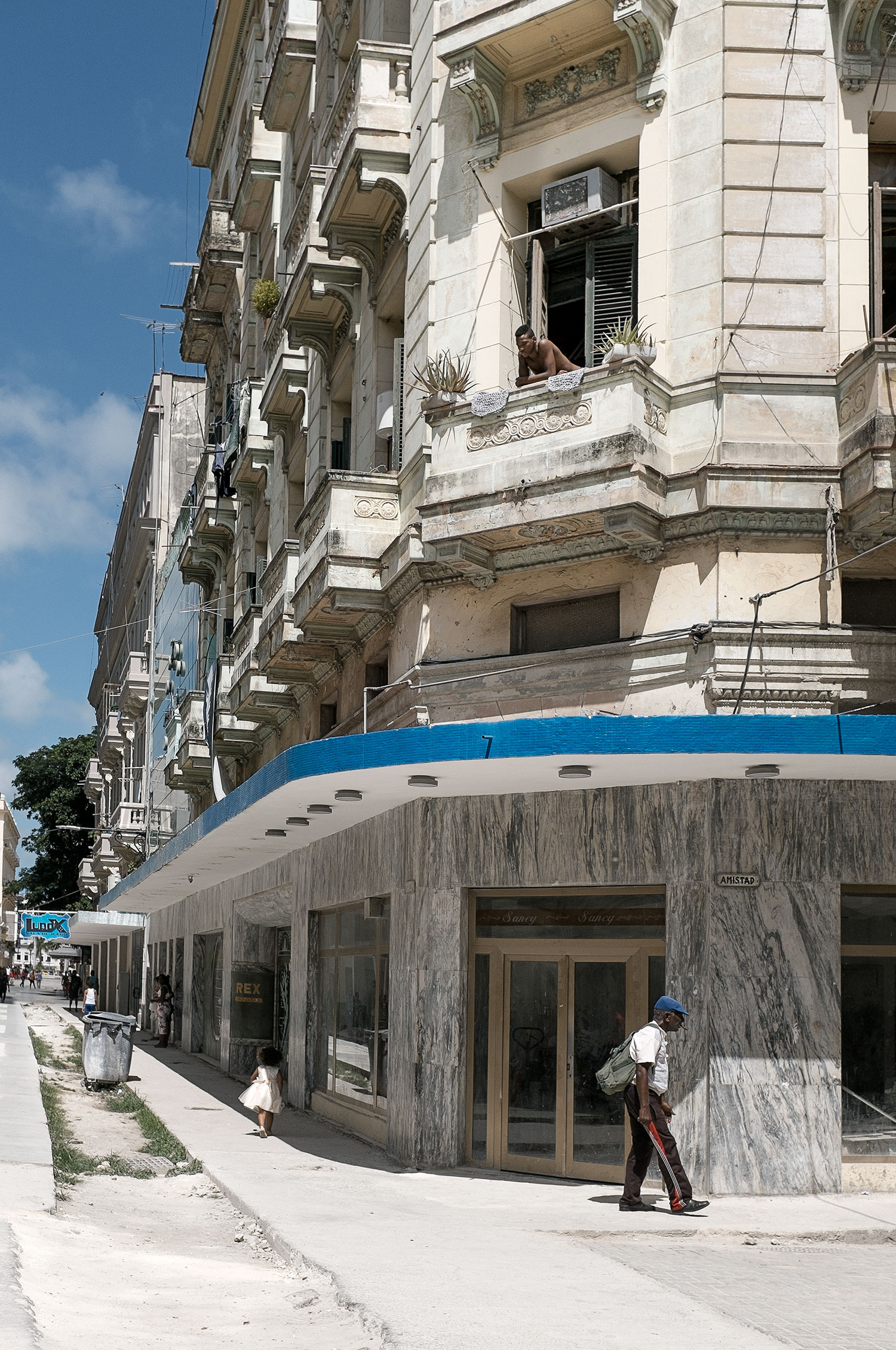 Я жил в гостинице «Куба Либре», весьма интересной в архитектурном плане. Некогда самое высокое здание в Латинской Америке видно издалека. Оно возвышается над городом, так что его сложно не заметить. Я не мог поверить, что кубинцы, пусть даже с советской помощью, могли бы построить такой современный отель. Однажды я гулял по атриуму второго этажа и наткнулся на фотоисторию отеля. Оказалось, он был построен Хилтоном за год до революции. На первых фотографиях было множество знаменитостей, торжественное открытие кубинского отеля, улыбающиеся постояльцы. Следующие фотографии ознаменовали иную веху — бородатые вооруженные повстанцы в зеленых формах вальяжно валяются в креслах разоренного отеля. Сейчас просторные номера выглядят пусто и скромно. На некоторые этажи, кажется, вовсе не заселяют — там темно и с потолков свисают провода.