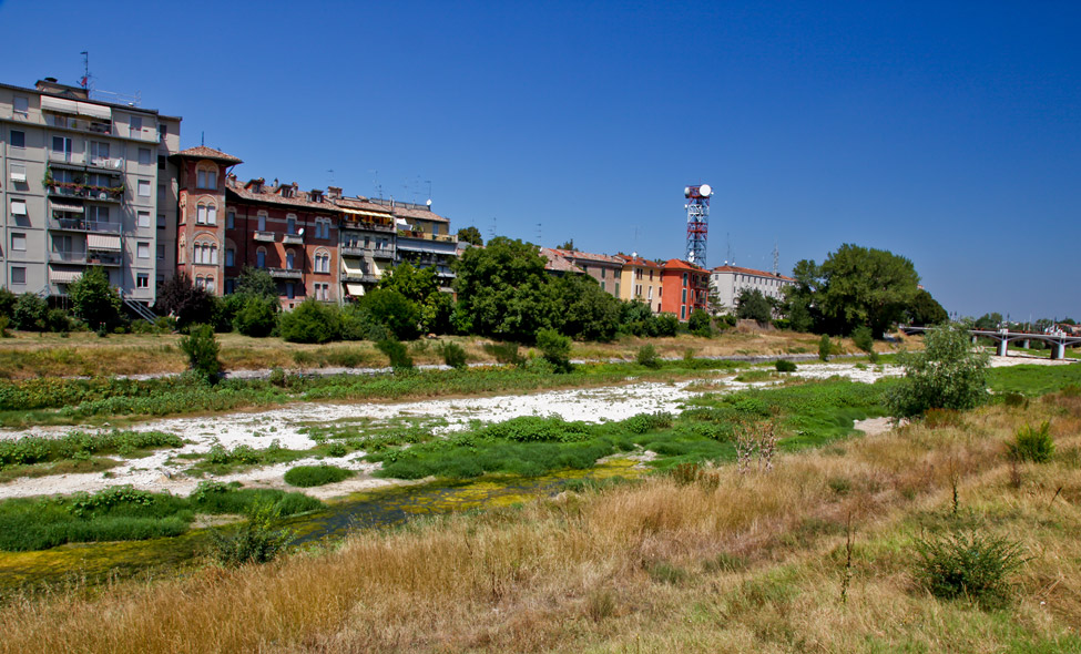 Через полчаса я уже был в Парме. Сразу чувствуется более интересный и солидный город. Хотя жара не пощадила и его. Город пересекает иссохшее русло реки.